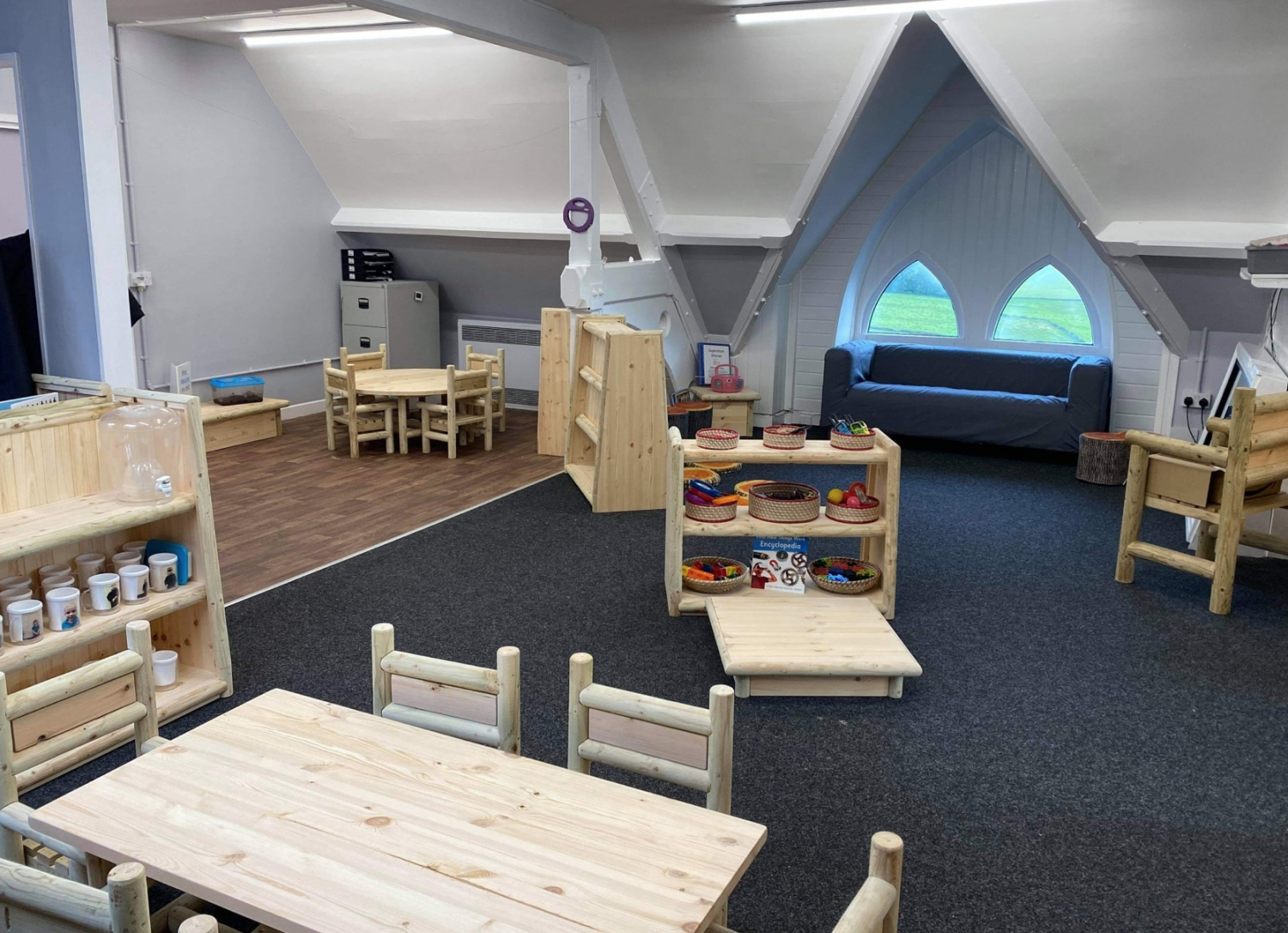 After personal consultation, the nursery directors decided to use the MOE indoor range to furnish their room layouts. MOE’s rustic styled furniture offered the space a bright natural attractiveness for the children and staff. A wonderful layout for the children to make best use of the learning aids, toys, books, sensory equipment, play and home corner.