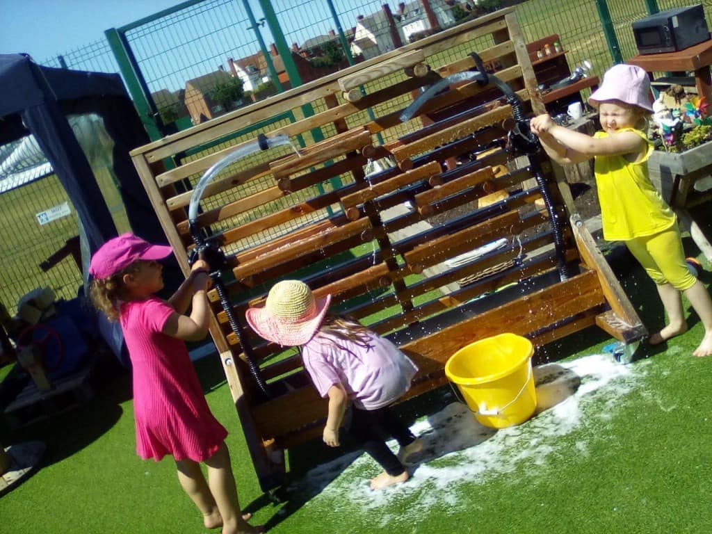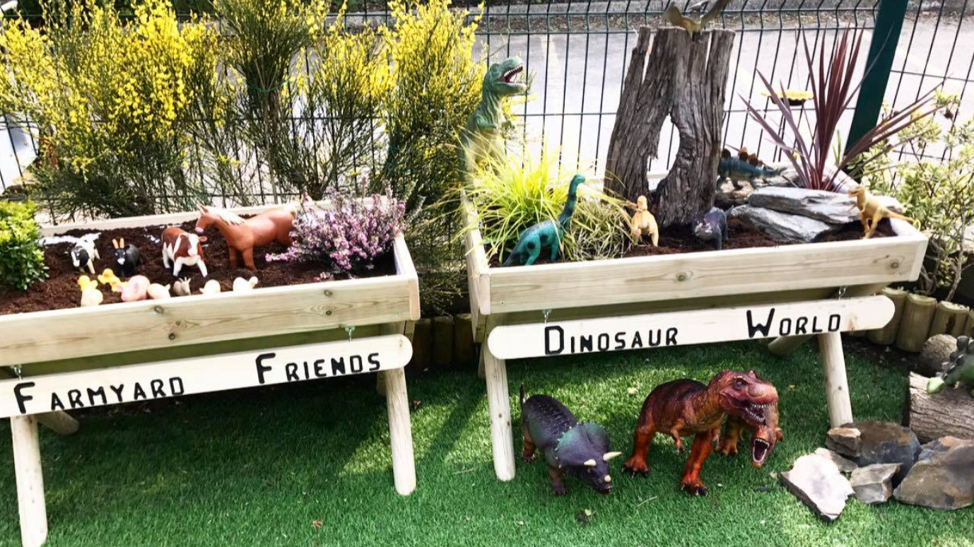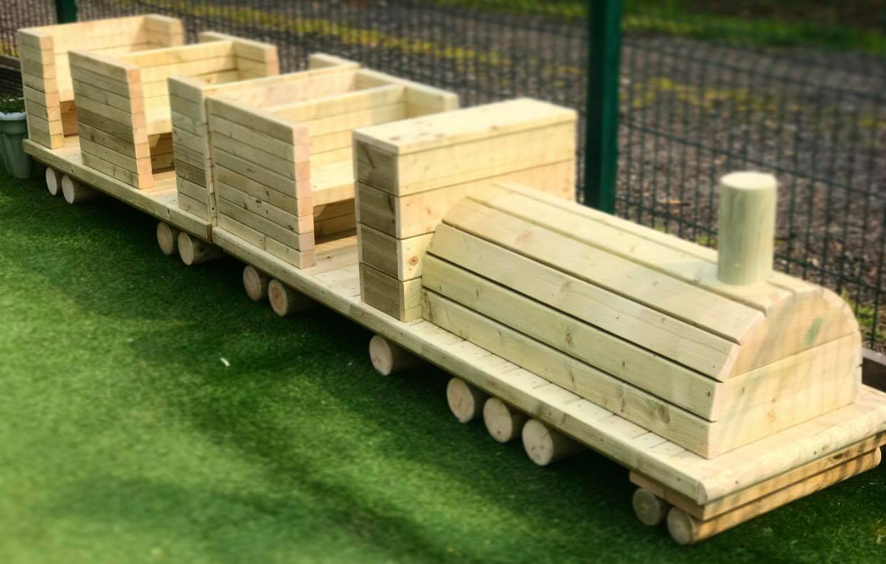 They choose a number of MOE products that are highly interactive and versatile for EYFS learning including the train locomotive set, water wall, vegetable gardens and a tepee den design for a literacy and story-time corner. They even choose further bespoke tailoring to create their ‘Farmyard friends’ and ‘Dinosaur World’ play gardens.